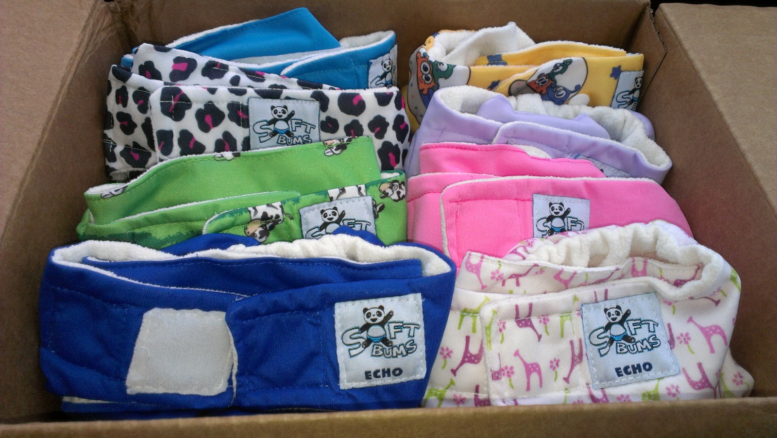 So, not a pic on the baby, but it is pretty in it's own right. A lot of Softbums I got off of the Cloth Diaper BST on Facebook. 4 Softbums Echos & 4 Softbums Omnis.