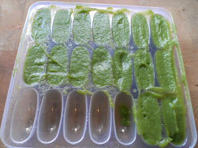 | Pureed Green Beans in the Mumi & Bubi freezer tray. |